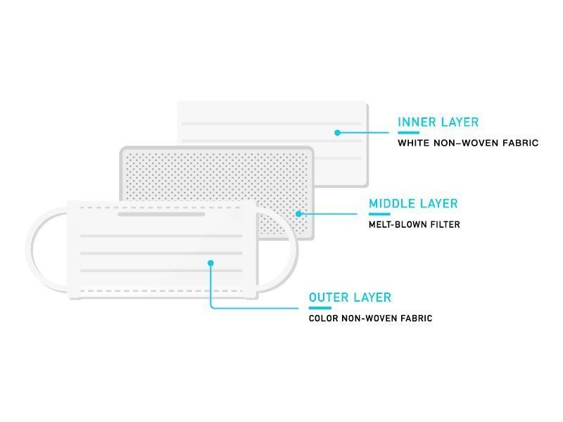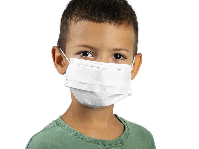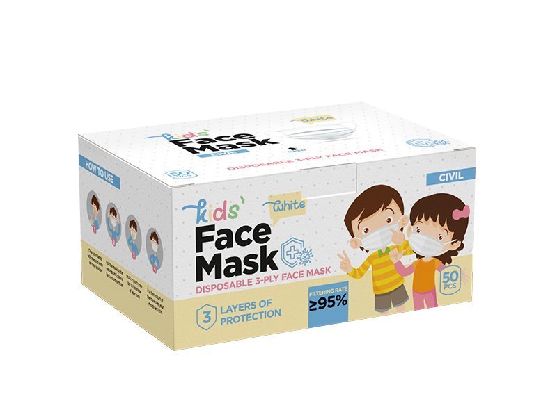 Otroške maske so izdelane iz enakih materialov kot za odrasle, iz tridelnega materiala, udobne so za nošnje in imajo na vrhu kovinsko pritrdilo, ki maski omogoča pravilen položaj na obrazu.