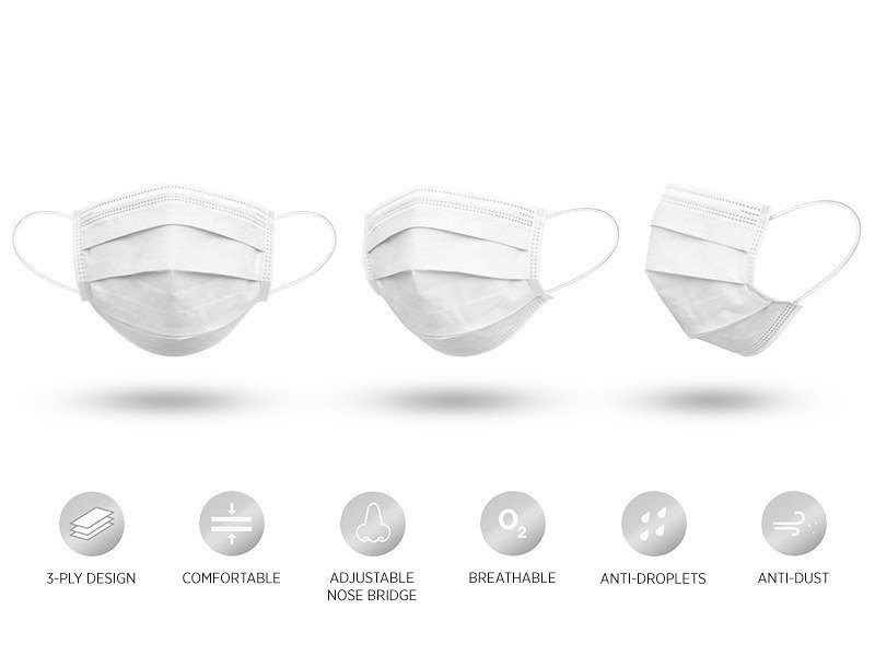 1. S čistimi rokami odprite embalažo. Vzemite masko tako, da jo držite na obeh skrajnih koncih in se ne dotikate notranje strani.